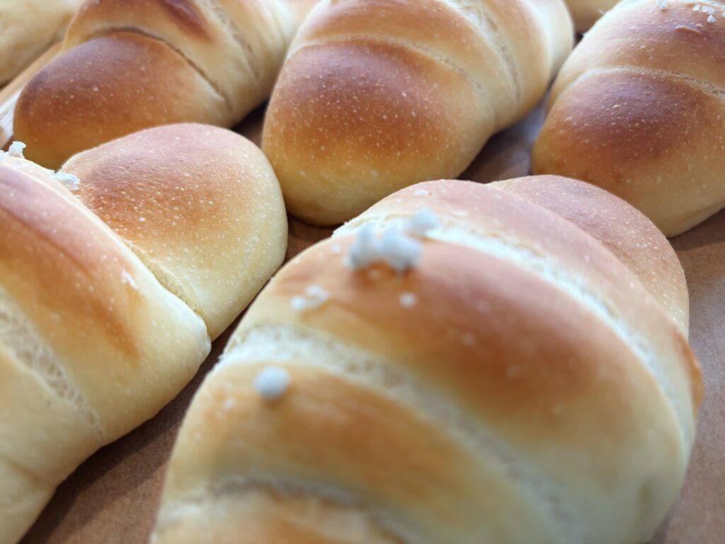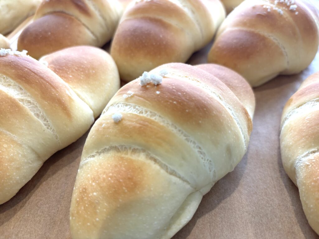 神社パンには平釜でたいた静岡のあらじお。プレミアムのパンには、薪で炊き、40時間かけてじっくり結晶化して作る淡路島の自凝雫塩(おのころしずくしお)を使用