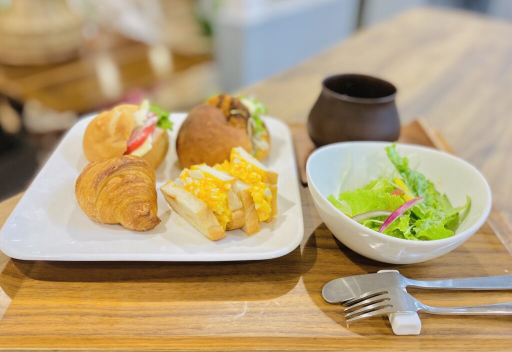 (バター塩パン・明太フランス・卵サンド・クロワッサン+サラダ+ドリング))